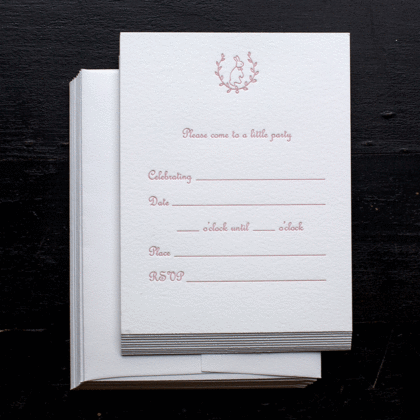 Pixie Lily’s precious carriage in Early American blue or Blush Pink. A lovely, classic birth announcement for your wee one, filled with all of the important, loving details. Each piece letterpress printed on our antique letterpress one at a time on textured white, scalloped edge card stock with hefty weight, matching, pointed flap envelope. Medium Size card: 4.25″ x 5.5″