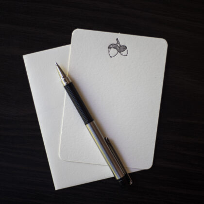 Long pads are 8 1/2″ x 3 5/8″ with 65 sheets, printed on smooth, cream, 80 lb card stock. Ancesserie only uses the finest paper available for our products: all are eco-friendly and take to your ink pen beautifully. Hand crafted in the USA. Please allow up to 3 business days to process and ship your order.