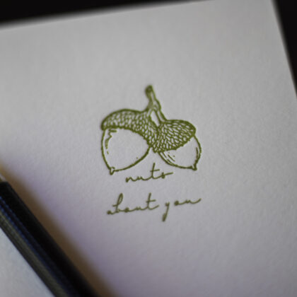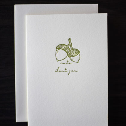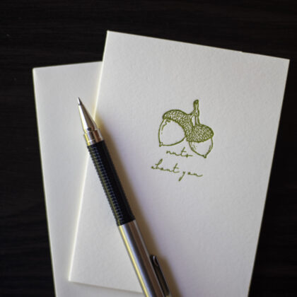 Adorable twin acorns add a playful element to any gift. The Gift Tags are handmade using a vintage letterpress, Chartreuse Ink on luxury, 100% cotton cardstock with matching twine. Original acorn artwork by Ella Wherry for Ancesserie. Generously sized for personalized notes.